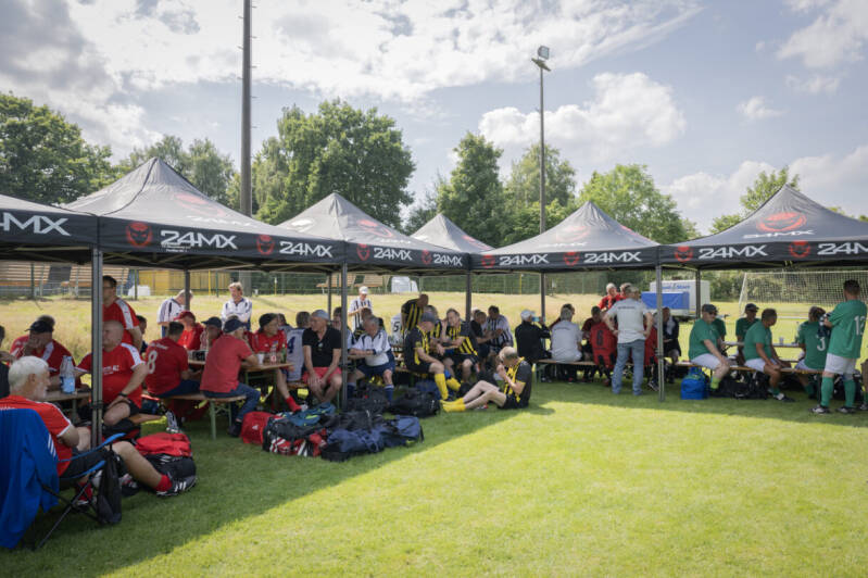 Allerdings möchten wir es nicht versäumen, dem Veranstalter TV Neuenburg mit seinem Team, ein ganz besonders großes Lob auszusprechen. Pagoden und Sitzgelegenheiten für alle Mannschaften waren bei den Temperatur doppelt gut zu bewerten. Aber auch die super Verpflegung (ok, die leckeren Frikadellen gab es nur kurze Zeit) darf nicht unerwähnt bleiben. Danke auch den Schiedsrichter*innen für ihre gute Leistung - sie waren am Ende mindestens genauso KO wie wir Akteure.